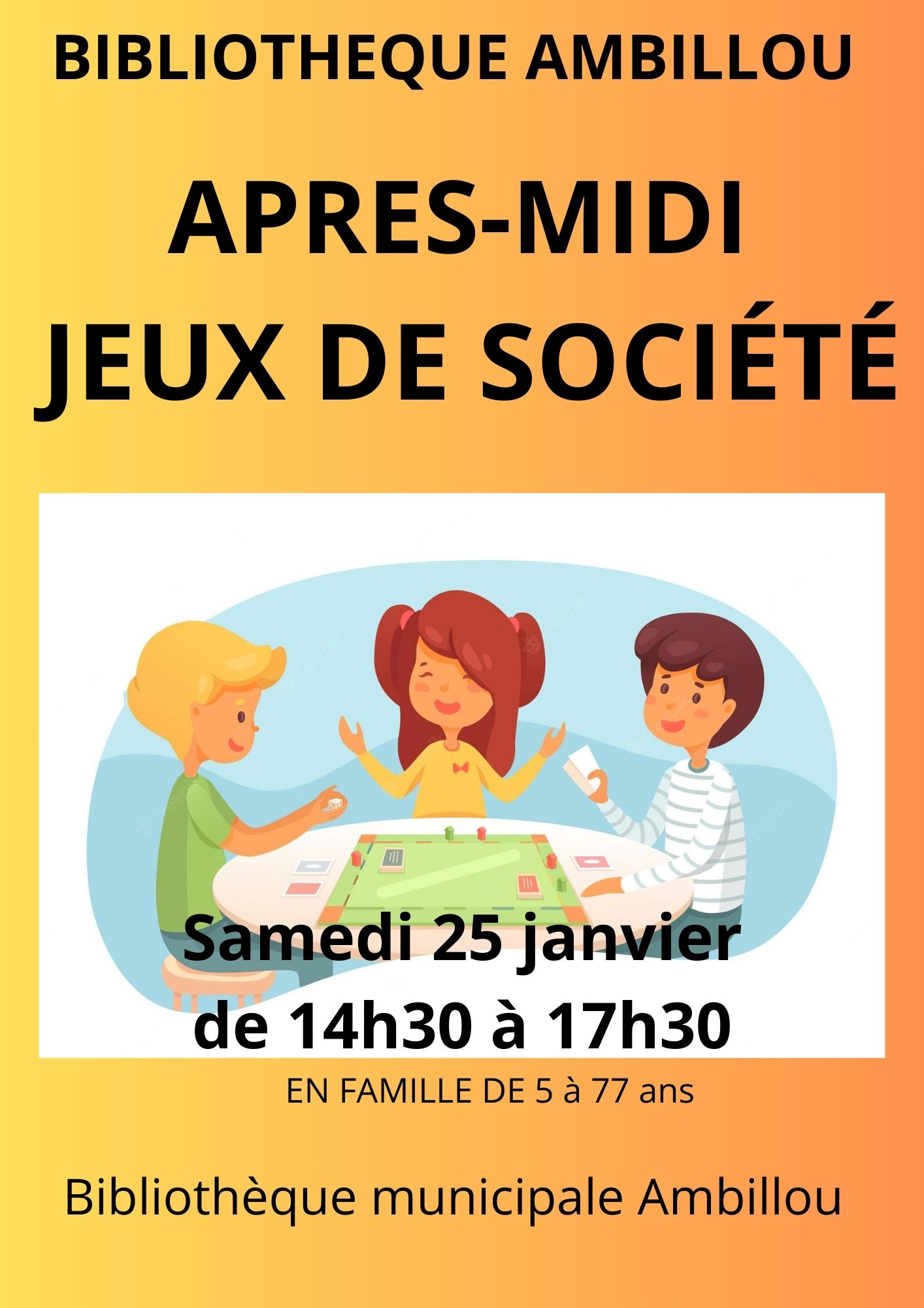 Ce samedi, le 25 janvier 2025, venez partager un moment convivial autour d'une partie de jeux de société, de 5 à 77 ans !